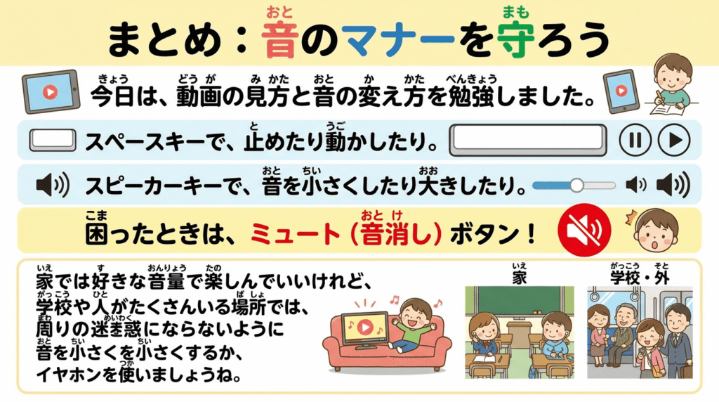 まとめ:音(おと)のマナーを守(まも)ろう